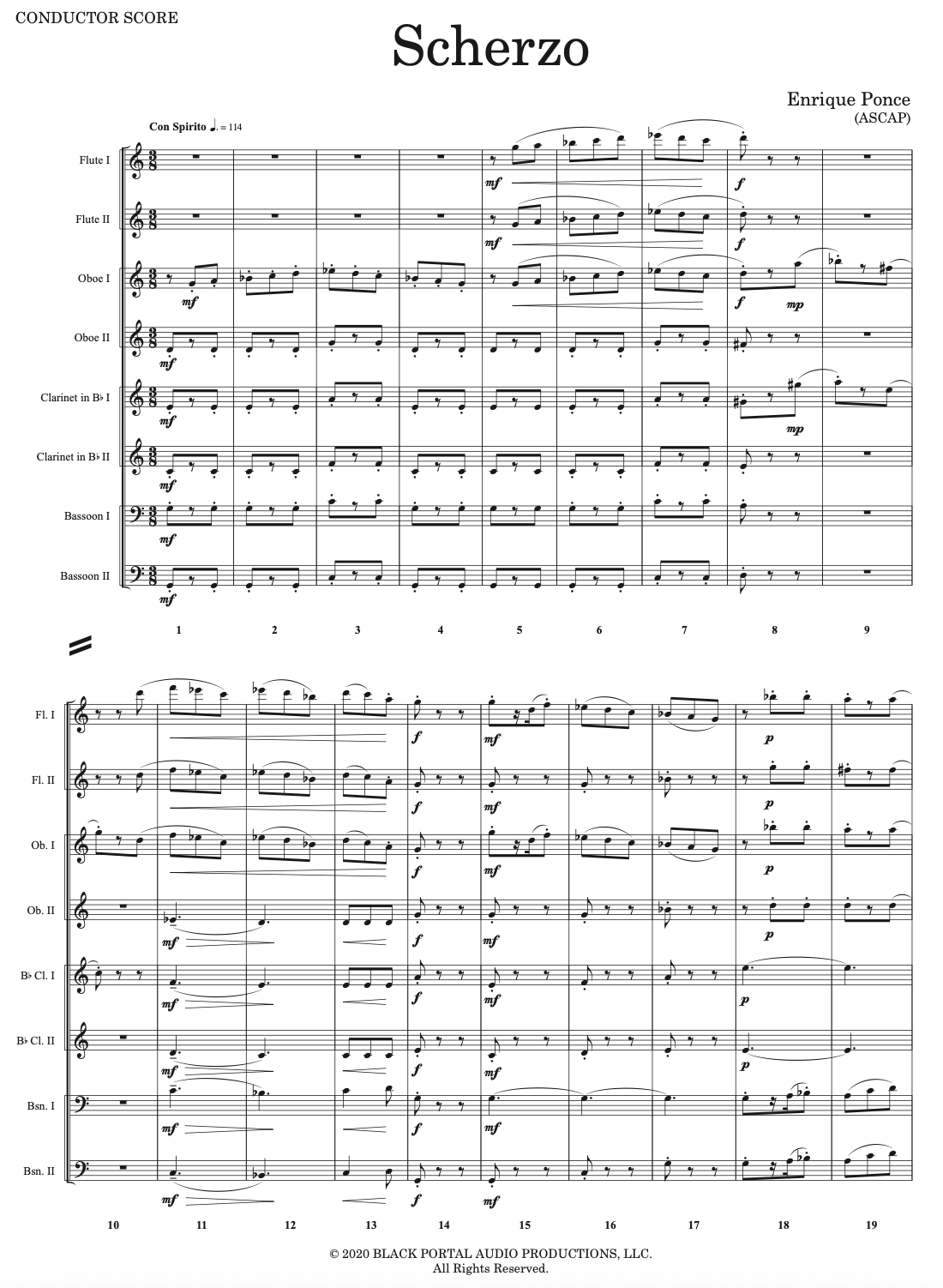 This lively and witty scherzo for woodwind octet (two flutes, two oboes, two clarinets, and